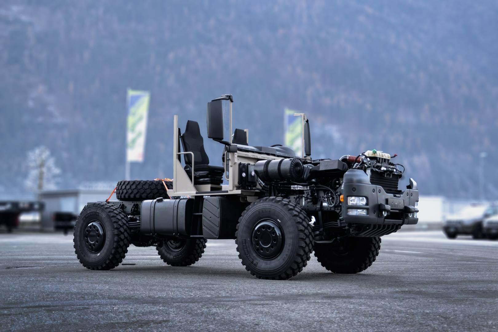 Leistungsstarke Motorisierung, hohe Geländegängigkeit bei einem abgestimmten Antriebsstrang waren die Grundvoraussetzungen der Entwicklung. Systemrelevante Zusatzausstattungen sind selbstverständlich verfügbar. Darüber hinaus wurden am Markt frei verfügbare und mehrfach erprobte Systemkomponenten verbaut.