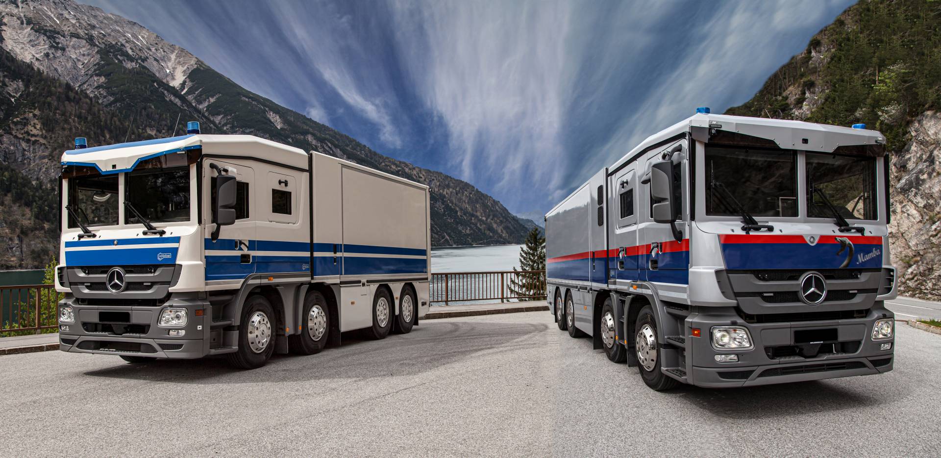 The most modern electronic security systems, communications installations, programmable data bus technologies and wheels with emergency operating features particularly set these vehicles apart.